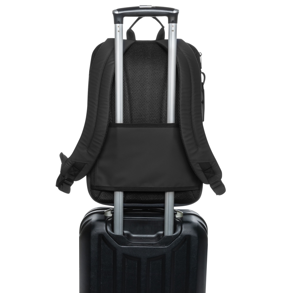 Das schlichte Design macht den Rucksack äußerst vielseitig und ideal für Arbeit und Freizeit. Er ist schick genug für den Sitzungssaal, bietet aber dennoch die Bequemlichkeit und den Komfort eines Rucksacks. Schützen Sie Ihren 15,6"-Laptop mit dem separaten, gepolsterten Rückenfach. In der bequemen, leicht zugänglichen Deckeltasche können Sie bei der Sicherheitskontrolle oder beim Zoll Ihre wichtigsten Gegenstände wie Reisepass, Ticket oder Smartphone verstauen. Die Netztaschen im Inneren sorgen für Ordnung bei Ihren kleineren Utensilien. An der Seite befindet sich ein Gepäckanhänger. Hergestellt aus recyceltem Polyester, das mit dem AWARE™-Tracer versehen ist. 2% des Erlöses aus jedem verkauften Produkt mit AWARE™ werden an Water.org gespendet. PVC-frei.