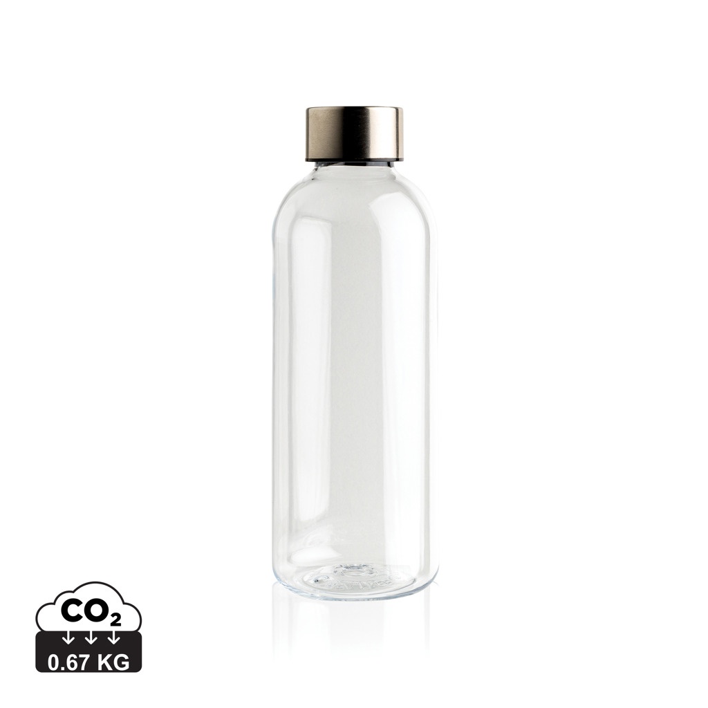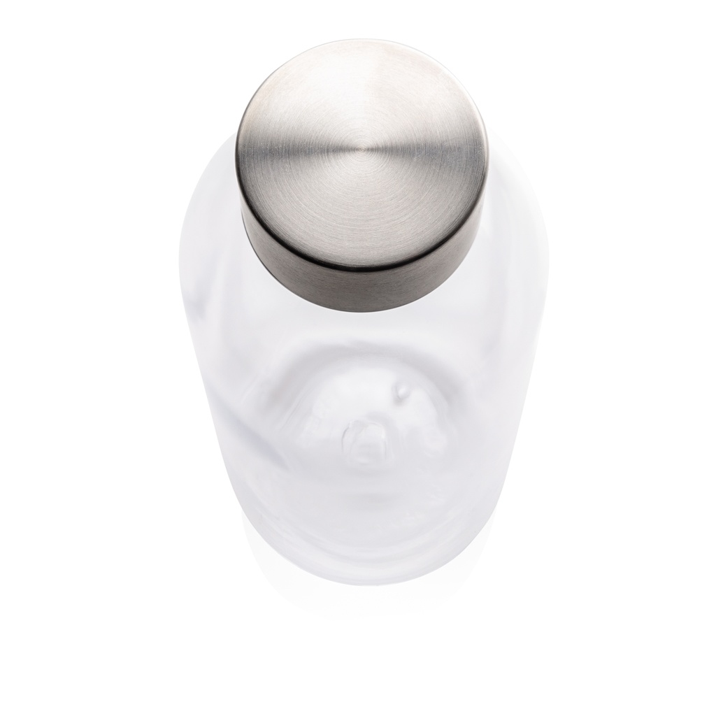 Auslaufsichere Trinkflasche mit Metalldeckel, transparent
