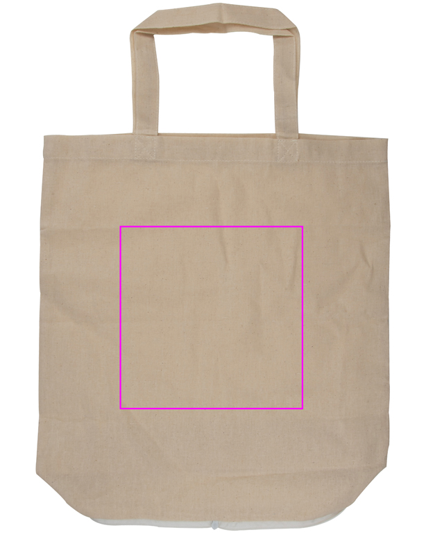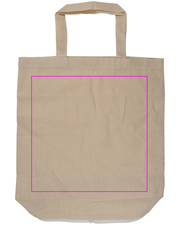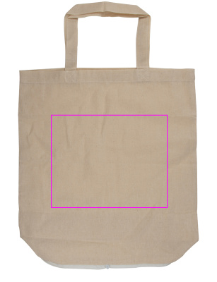 Naturfarbene, faltbare und umweltfreundliche Baumwolltasche (120g/m²) mit Tragegriff. Ihr Logo drucken wir einseitig auf.