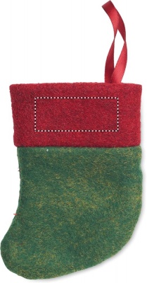 Dessert-Besteck, bestehend aus Löffel und Gabel aus Edelstahl und Serviette aus Baumwolle 150 g/m². Lieferung in kleinem Weihnachtsstiefel.