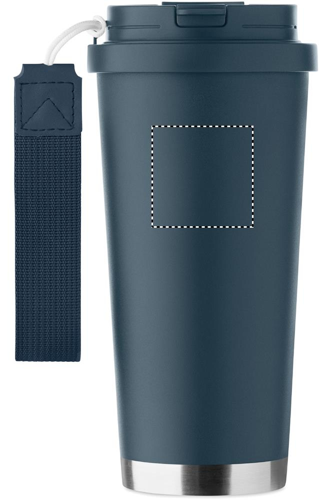 Doppelwandiger Becher aus recyceltem Edelstahl (90% recycelter Edelstahl und 10% Edelstahl). 2 in 1 PP-Deckel mit Trinköffnung und Trinkhalm sowie RPET-Trageband. Auslaufsicher. Füllmenge: 500 ml.