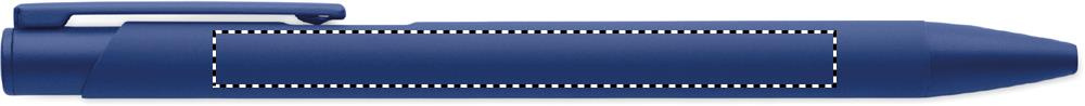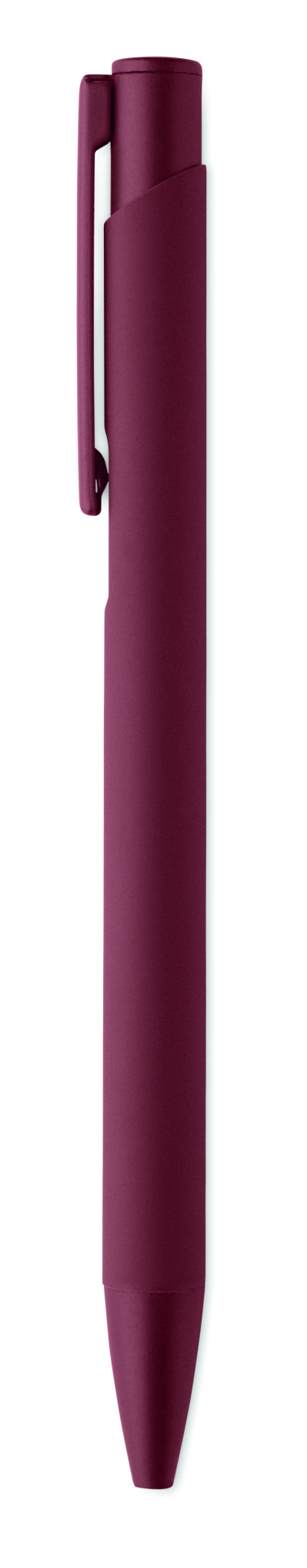 Druckkugelschreiber aus recyceltem Aluminium mit Clip aus Eisen. Der Schaft ist farbig gummiert. Blaue Tinte.