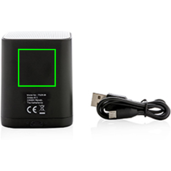 3W wireless Lautsprecher, der mit Ihrem Logo individuell gestaltet werden kann. Bei Gebrauch des Lautsprechers leuchtet das Logo auf und setzt Ihr Logo optimal in Szene. Der Lautsprecher verfügt über BT 4.2 mit einer Reichweite von bis zu 10 Metern. Die eingebaute 400mAh Batterie erlaubt einen Musikgenuss von bis zu 4 Stunden und ist innerhalb einer Stunde wieder aufgeladen.