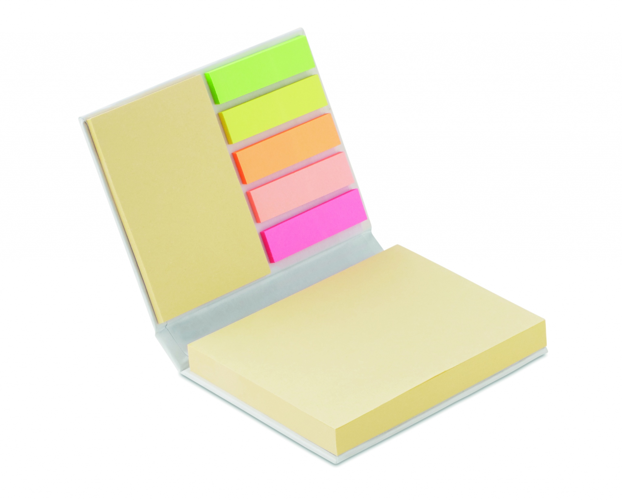 Set mit verschieden großen Haftnotizblöcken. 100 Blatt (10,2x7,5 cm), 25 Blatt (5x7,5 cm) sowie 5 farbigen Markerblöcken.
