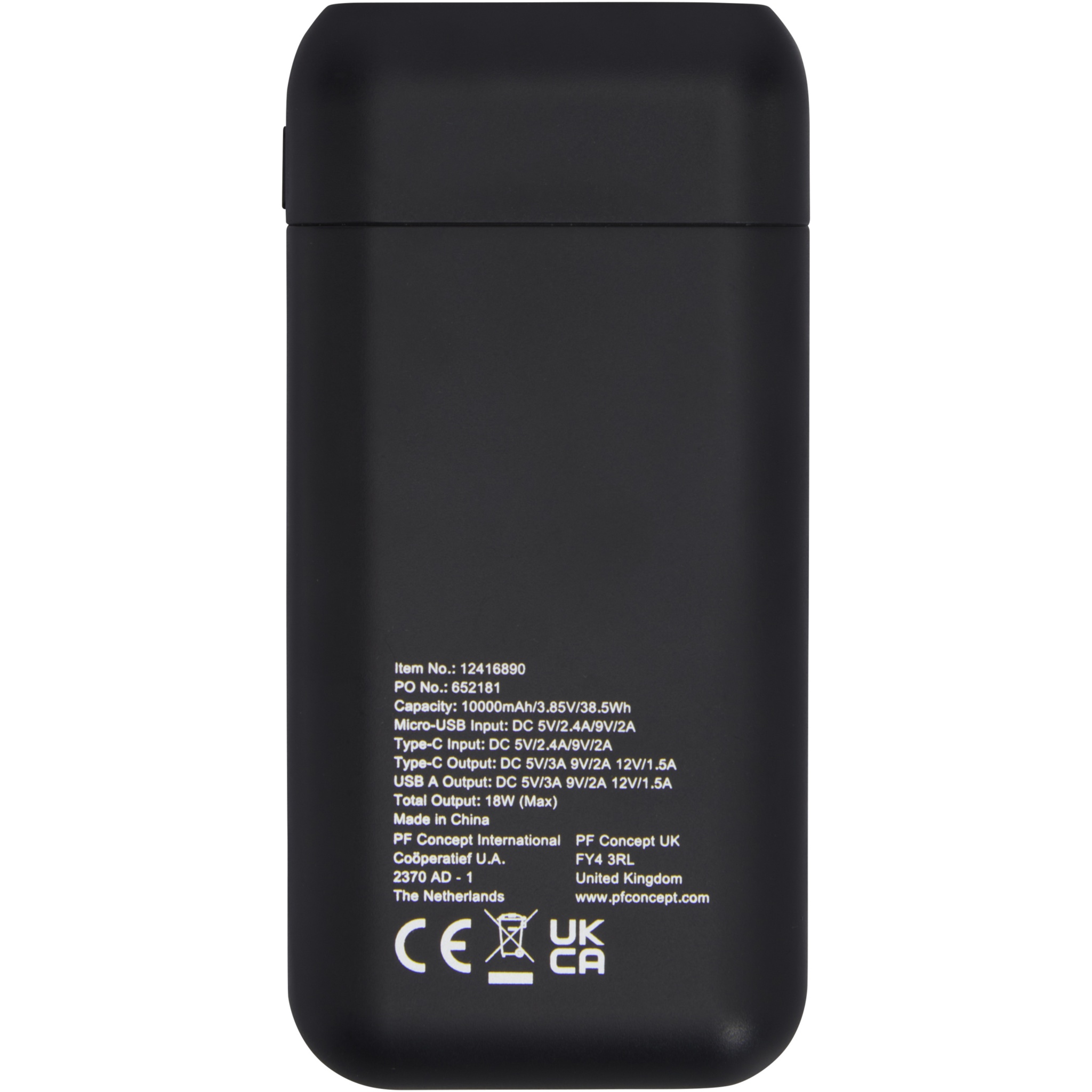 Kompakte Powerbank mit einem 10.000 mAh Akku mit hoher Dichte, der schnelle Energieabgabe bis zu 18 W unterstützt. Mikro-USB-Eingang: DC 5 V/2,4 A, 9 V/2 A, Typ-C-Eingang: DC 5V/2,4 A, 9 V/2 A, Typ-C-Ausgang: DC 5 V/3 A, 9 V/2 A, 12 V/1,5 A, USB-A-Ausgang: DC 5 V/3 A, 9 V/2 A, 12 V/1,5 A, Gesamtleistung: max. 18 W. Inklusive PVC-freiem TPE Kunststoff Typ-C PD-Ladekabel. Präsentiert in einer Avenue-Geschenkbox.