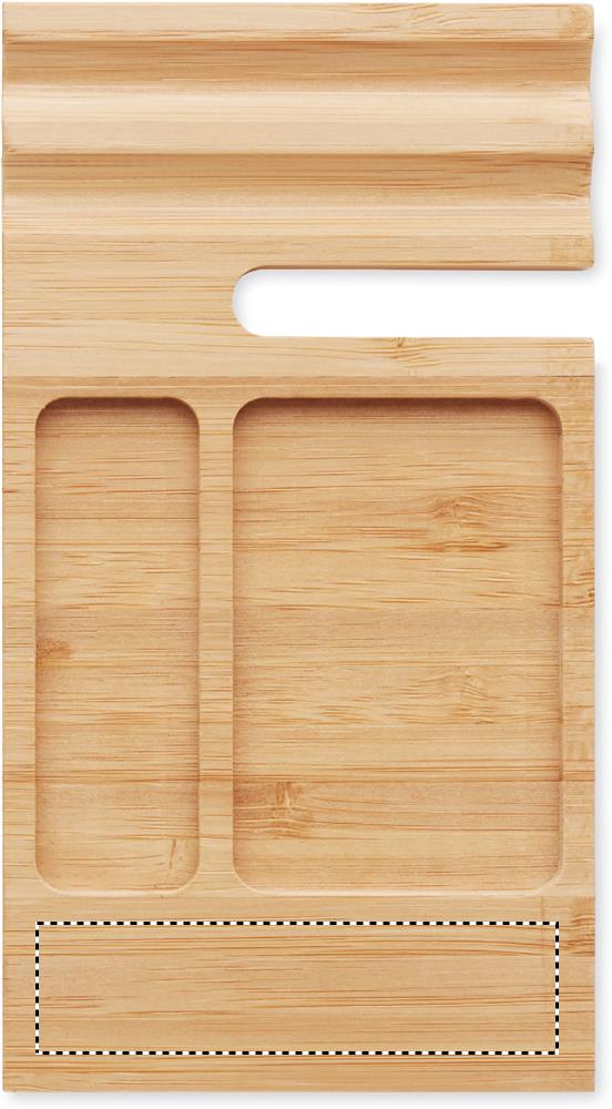 Smartphone Halter aus Bambus. Inkl. Büroklammern und farbigen Markerblöcken. Bambus ist ein natürliches Produkt, es kann daher zu leichten Abweichungen in Farbe, Dekor und Maßen kommen.