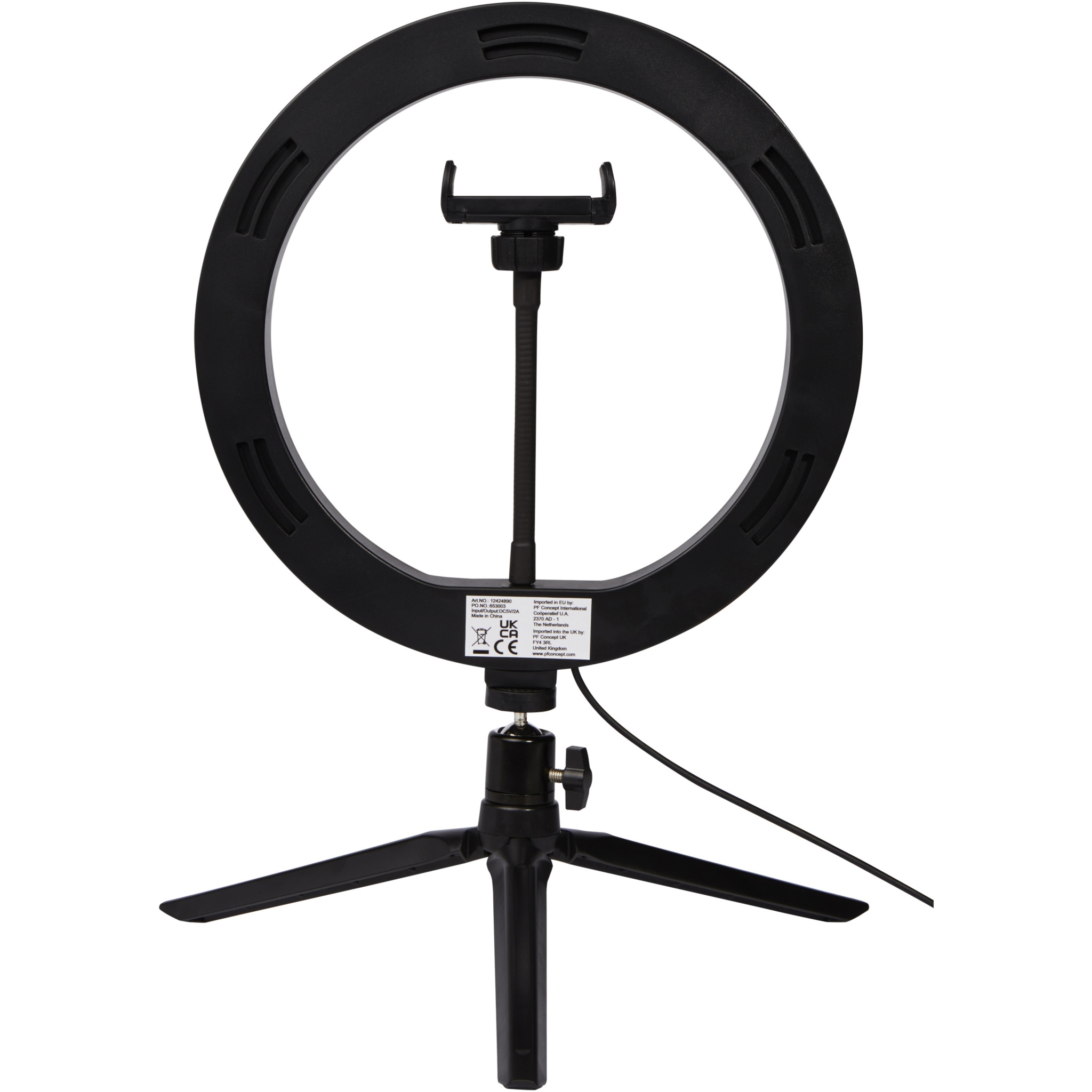 Studio Ringleuchte für Selfies und Vlogging mit Telefonhalterung und Stativ, Durchgehend schwarz