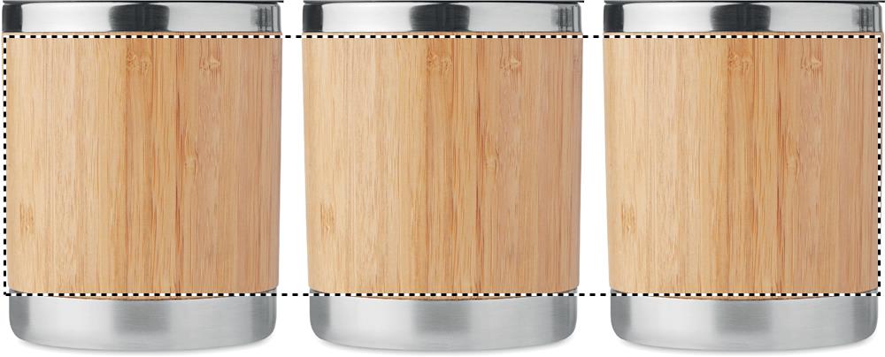 Doppelwandiger Trinkbecher aus Edelstahl mit Bambus-Finish. Drehbare Trinköffnung. Füllmenge: 250 ml. Da Bambus ein natürliches Material ist, können Farbton und Maße pro Artikel variieren. Dies kann zu Abweichungen im Ergebnis der Veredlung führen.