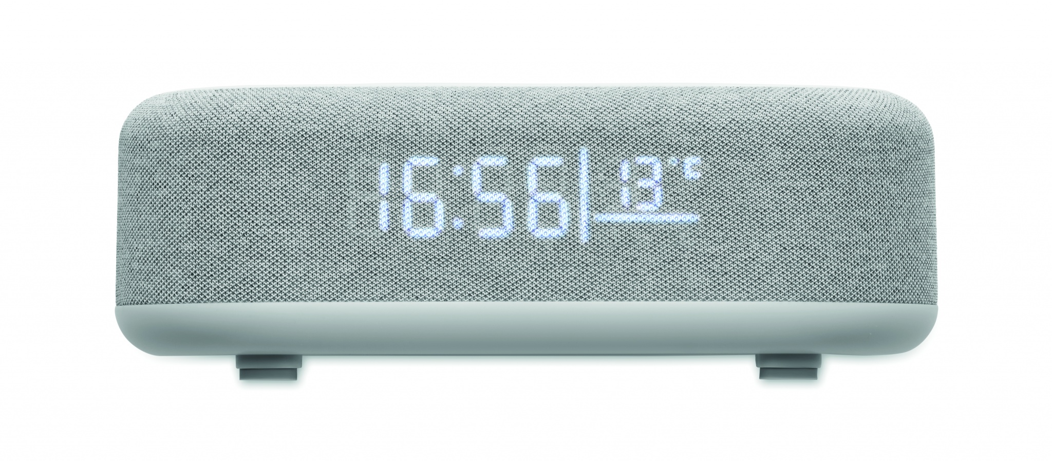 4-in-1 wireless 15W charging 5W speaker in ABS with weather station and ambient light. Alarm clock. Time and temperature display. Built-in Li-Iin battery: 1200 mAh. Playing time approx. 7 hours.