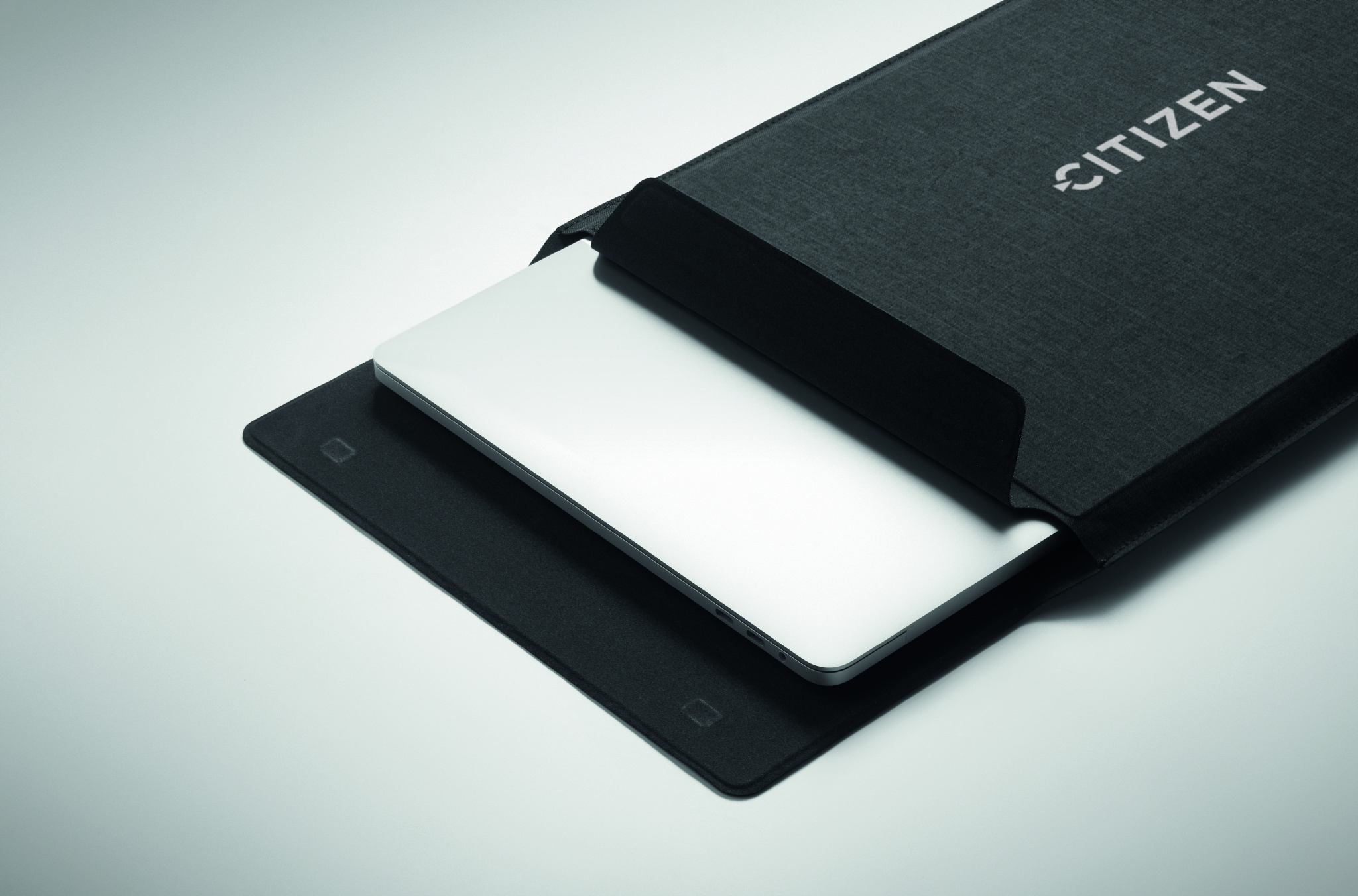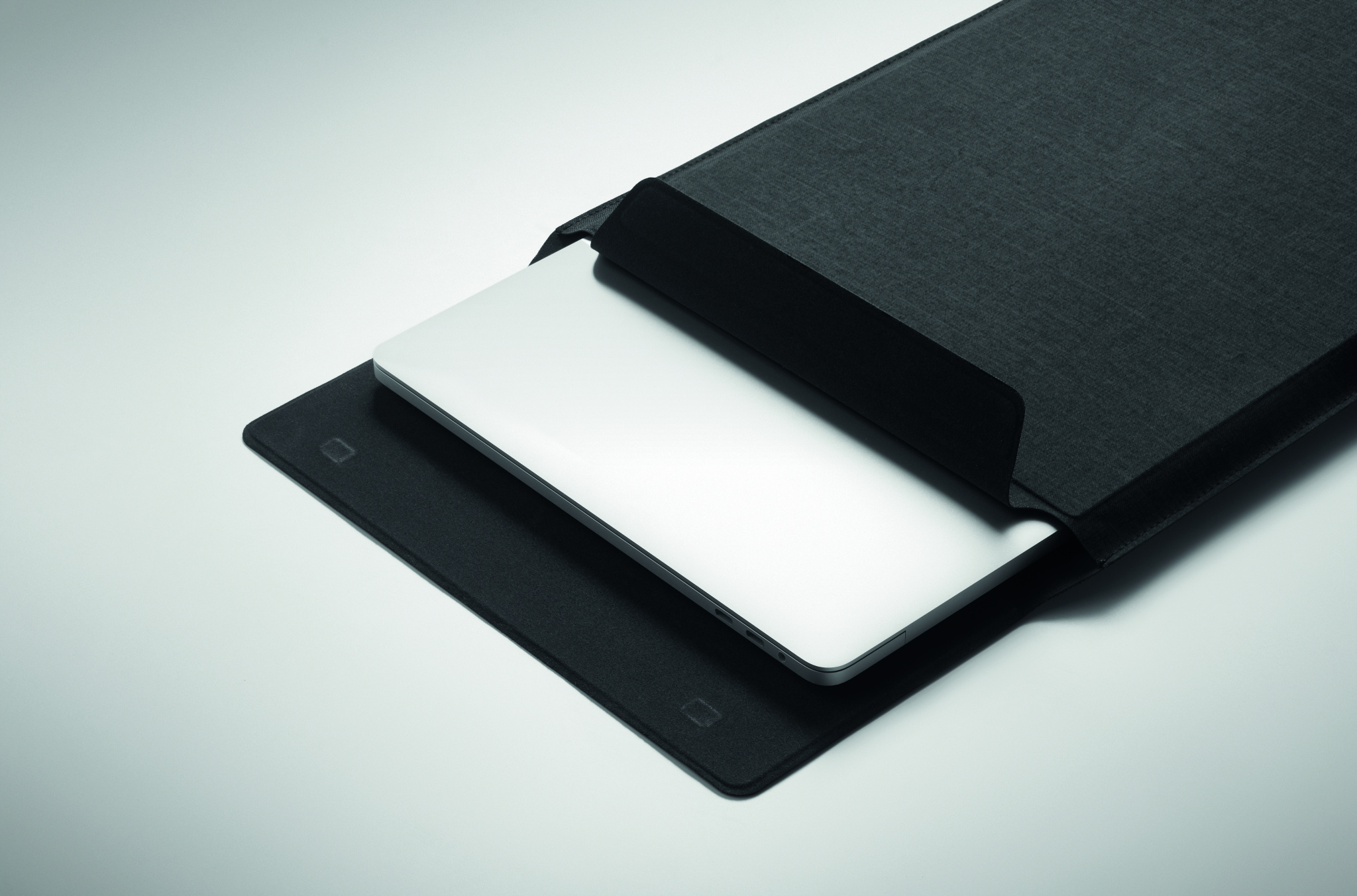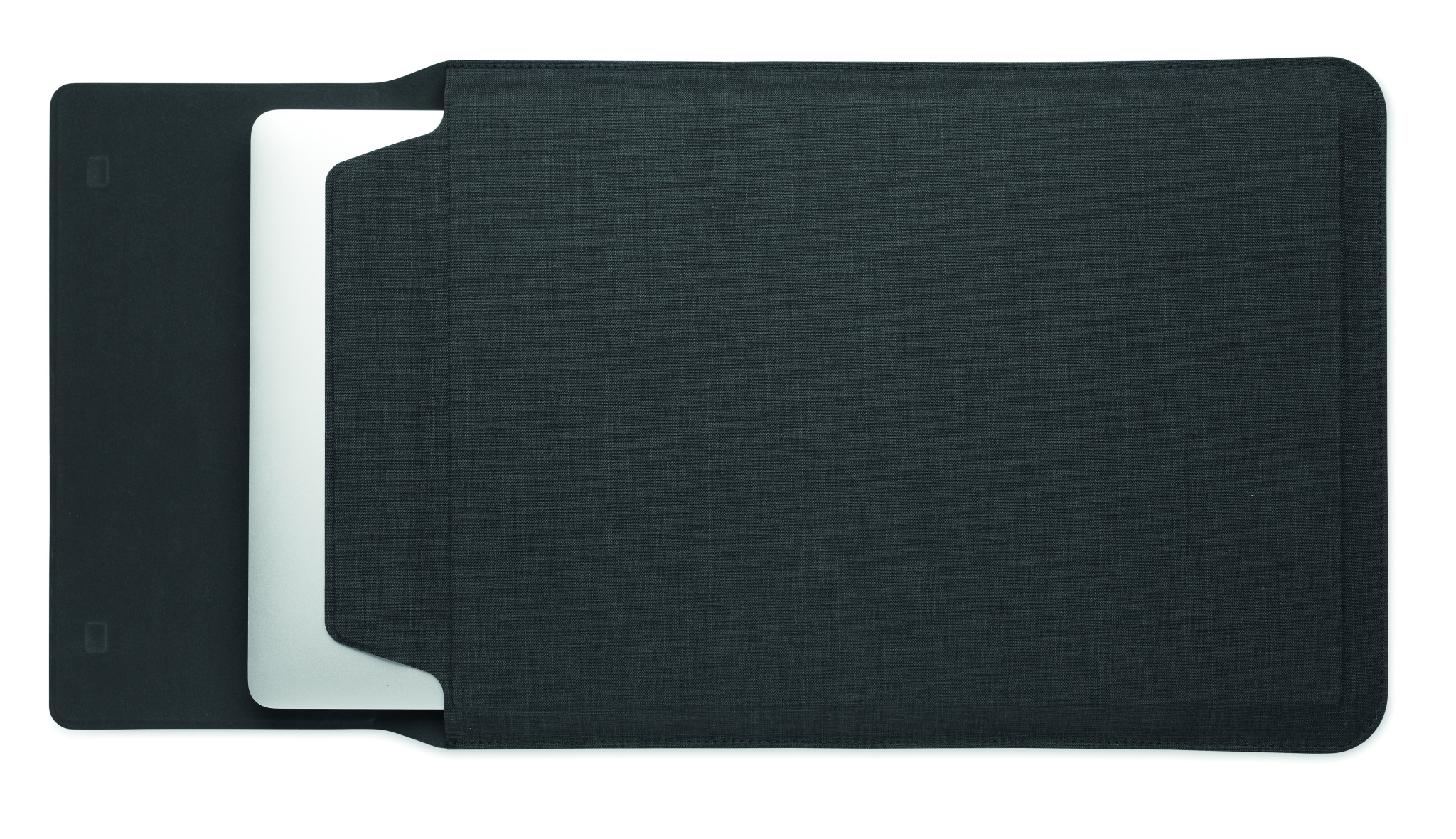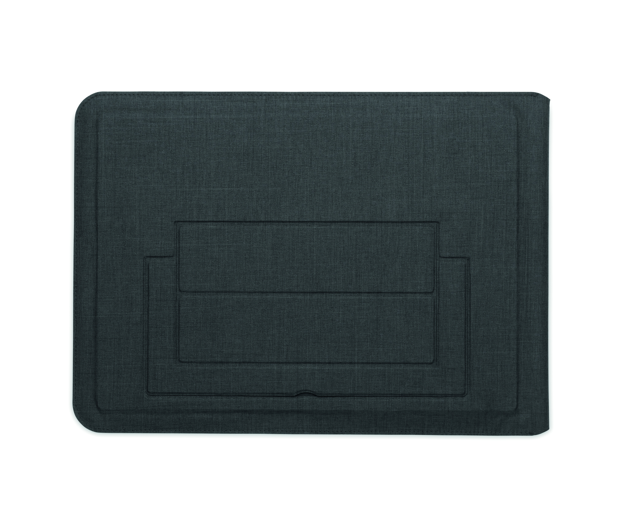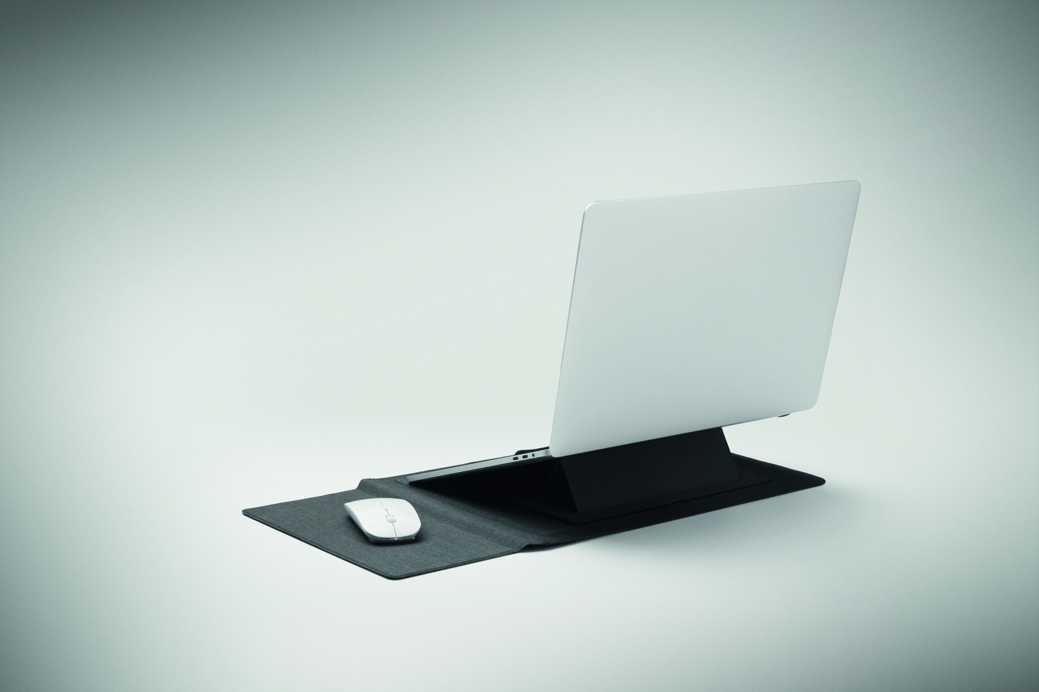 3 in 1 16 inch RPET laptop sleeve with laptop stand and mouse pad functionality when unfolded.