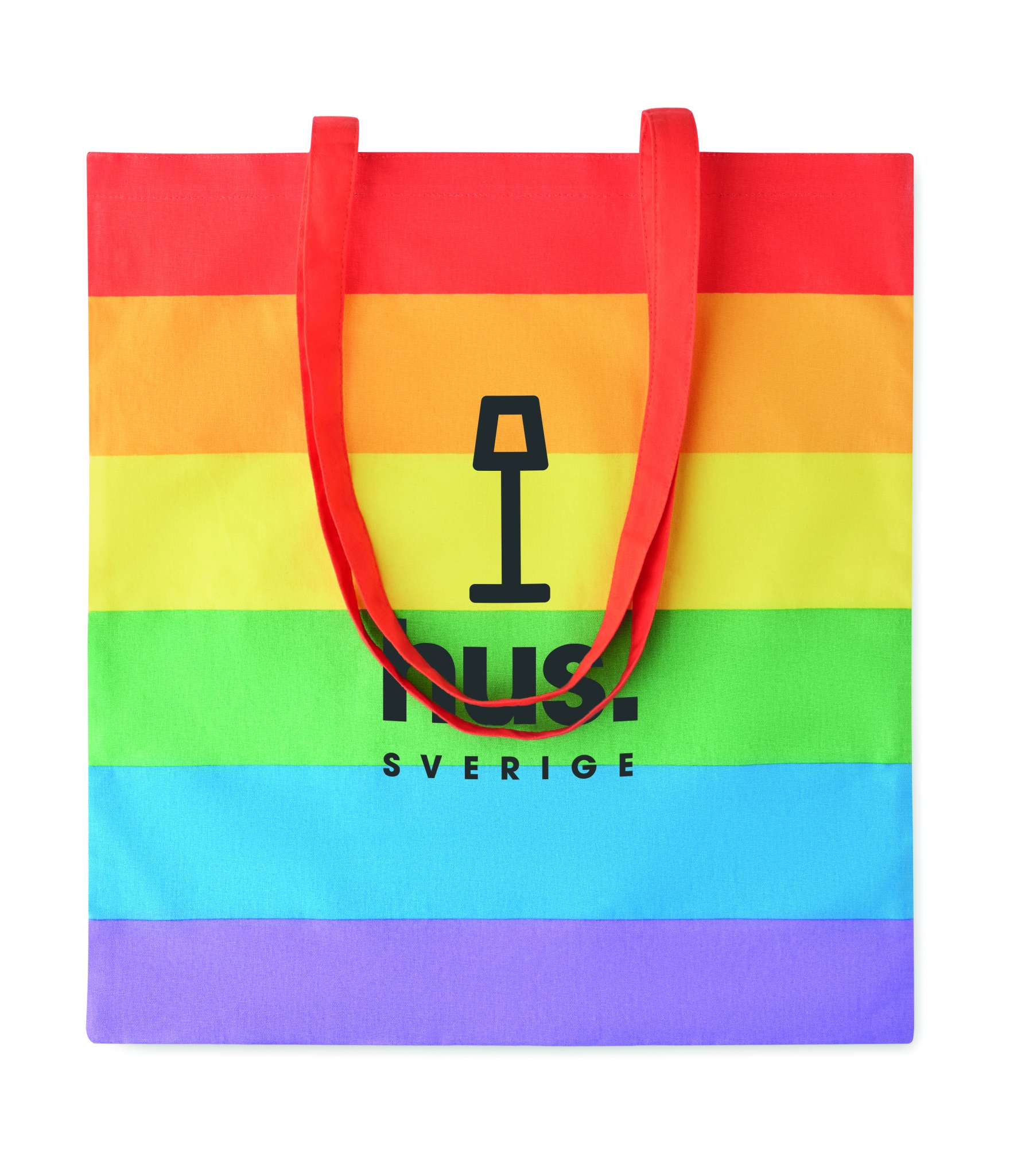 Rainbow cotton shopping bag with long handles. 200 gr/m².