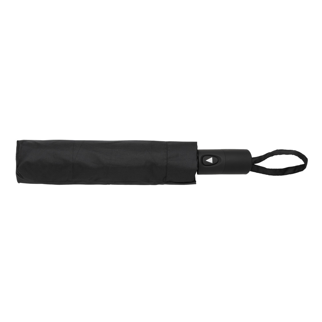 No greenwashing, but telling a true story about sustainability! This Impact umbrella is made with 190T RPET pongee with AWARE™ tracer. With AWARE™, the use of genuine recycled fabric materials and water reduction impact claims are guaranteed, by using the AWARE disruptive physical tracer and blockchain technology. Save water and use genuine recycled fabrics. With the focus on water 2% of proceeds of each Impact product sold will be donated to Water.org. Stay fashionable and dry with this 3 section auto open umbrella that opens at the touch of a button and features a compact design that fits perfectly in a purse or tote. Metal frame, fibreglass ribs with ABS handle. Stormproof. This umbrella canopy has saved 4,6 litres of water and is made with 7,7 PET bottles (500ml). Water savings are based on figures when compared to conventional fibre. This calculated indication is based on reliable LCA data as published by Textile Exchange in their Material Snapshots 2016.