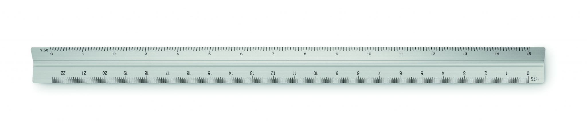 30 cm triangular aluminium architectural scale ruler. 3 sides and 5 different measurement scales 1:20, 1:25, 1:50, 1:75, 1:100.