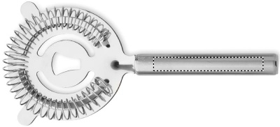 Cocktail kit in cotton pouch with string. Including 5 piece: a double-sided measuring jigger (15 & 30 ml), wooden muddler, cocktail strainer, drink stirrer and waiter's corkscrew knife.