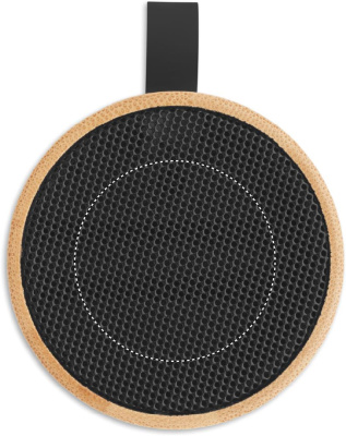 Wireless 5.1 speaker with bamboo casing and ABS base. Features 3W mono sound. Includes rechargeable and replaceable 500mAh battery. Compact and modern design.