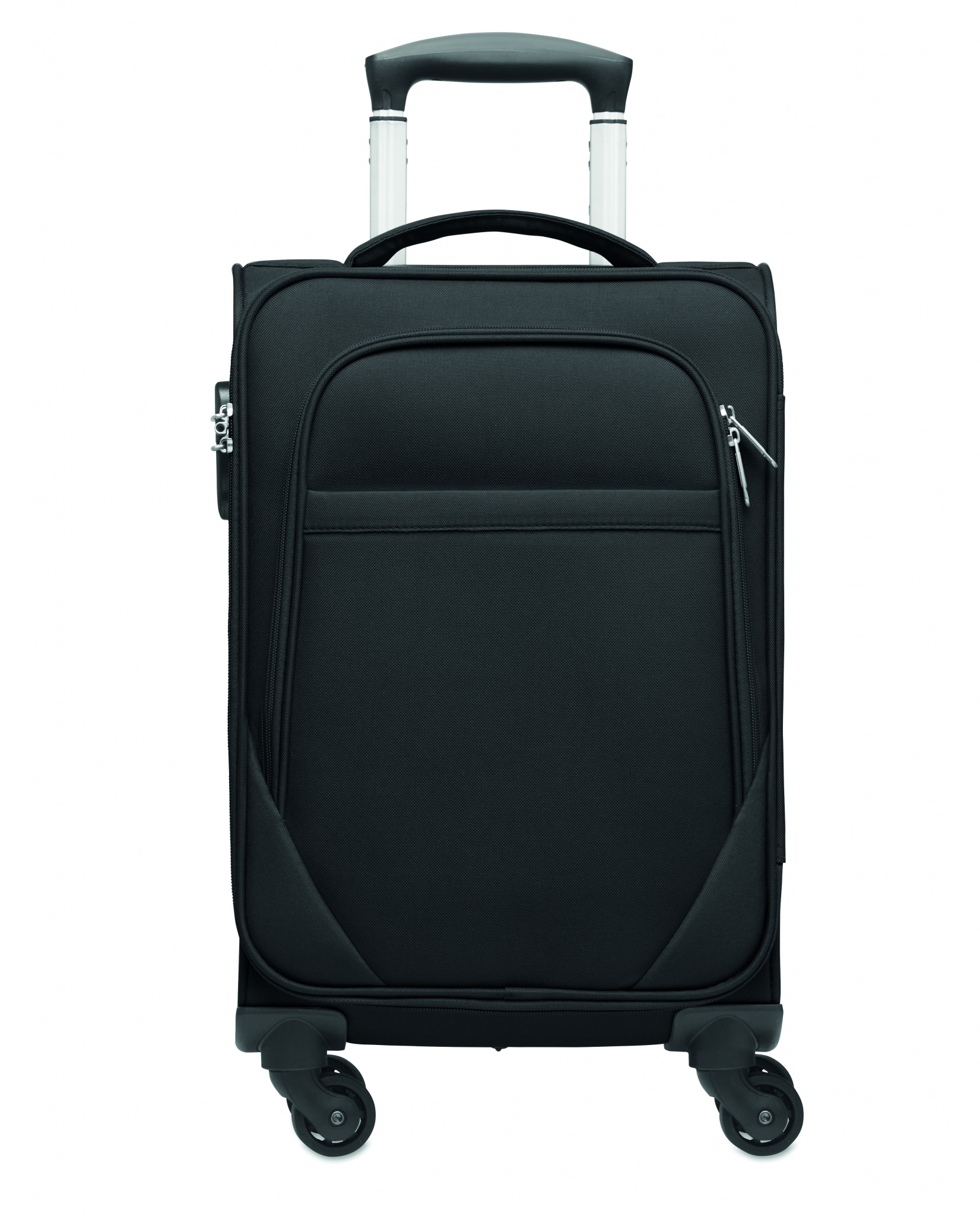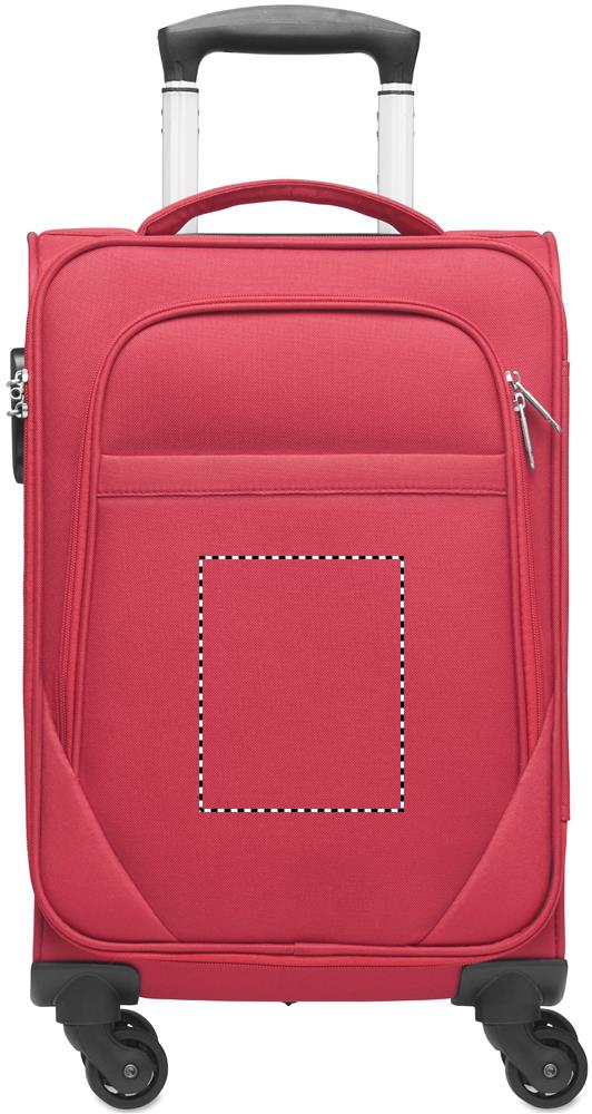 600D RPET Polyester soft side cabin trolley. Including exterior zipped laptop compartment. Zipped front pocket. Combi lock. Bottom compartment with ribbons.