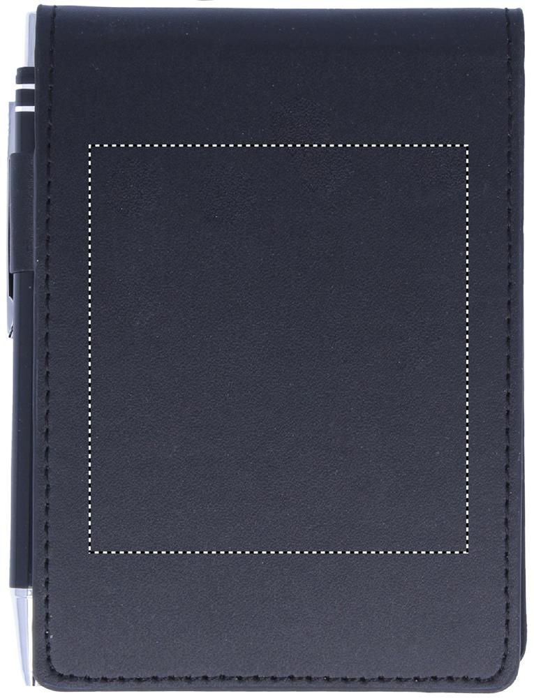 A7 notepad with matching pen. PU pouch with pen holder. 60 plain pre-perforated sheets. Matching metal push button ball pen. Blue ink.