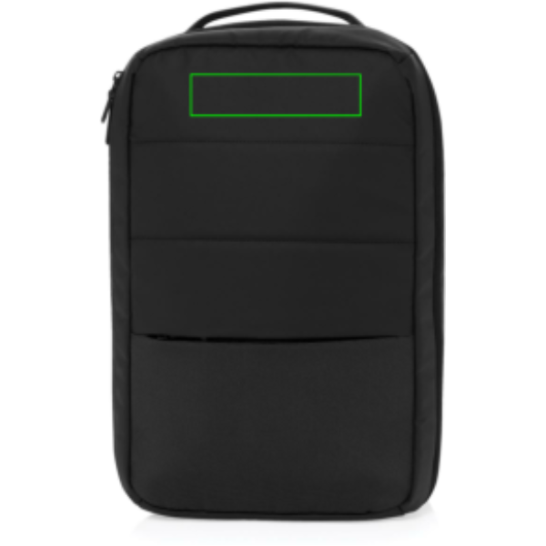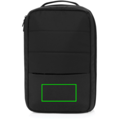The Armond Aware™ RPET Free On Board Travel Pack is designed for the budget-conscious or short business traveller. Made from rPET with a PU water-resistant coating and backed with AWARE technology, this backpack features a 15 inch padded laptop compartment on the right side, perfect for MacBooks or smaller devices. The interior, lined with rPET, ensures your belongings stay organised, while the adjustable shoulder straps and sturdy webbing handle on top provide comfort and convenience. With a front zipper pocket and a mini trolley compartment complete with an elastic strap, this pack is perfect for business or weekend trips. Its compact size fits under any budget airline seat, so you won't have to worry about extra baggage fees. Made with recycled polyester embedded with the AWARE™ tracer. 2% of proceeds of each product sold with AWARE™ will be donated to Water.org. PVC free.
