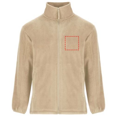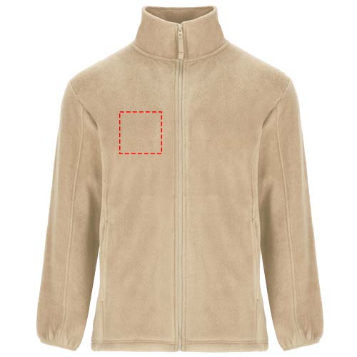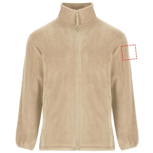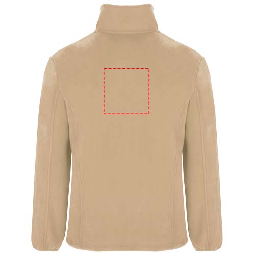 Fleece jacket with high lined collar and matching reinforced covered seams. Injected zip with matching puller made of fabric. Side pockets. Cuffs with elastic trim. Bottom hem with inner side adjusters. Removable label. The model is 185 cm and is wearing size M.