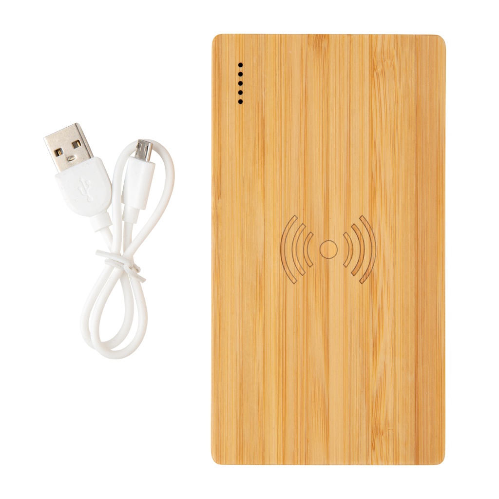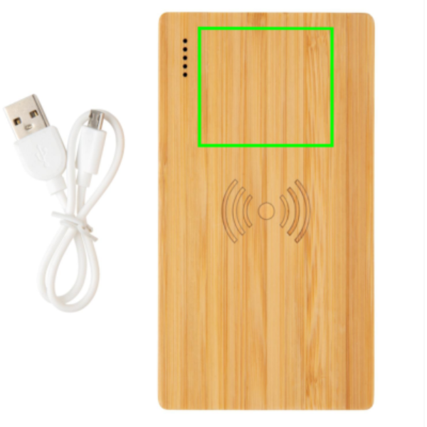 Logo trade promotional merchandise picture of: Bamboo 4.000 mAh wireless 5W Powerbank