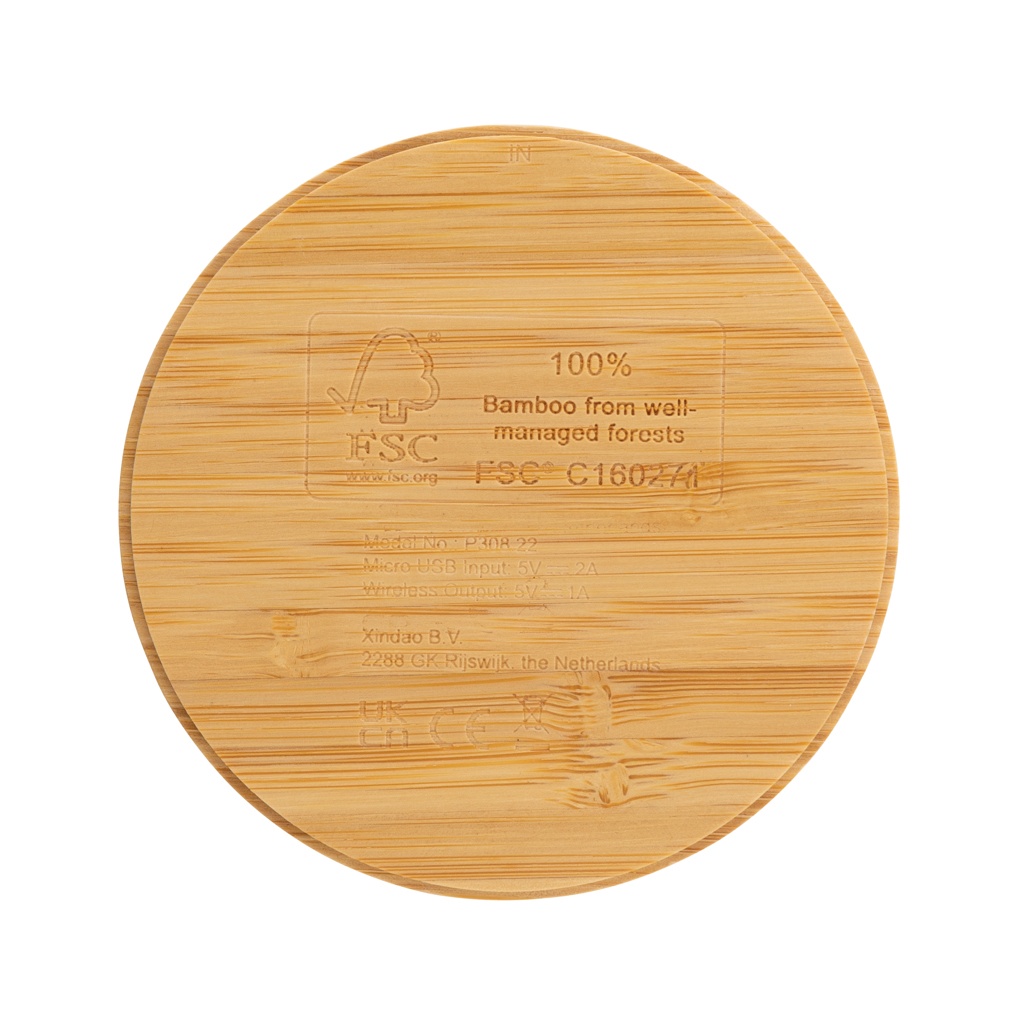 Logo trade business gift photo of: Bamboo 5W round wireless charger