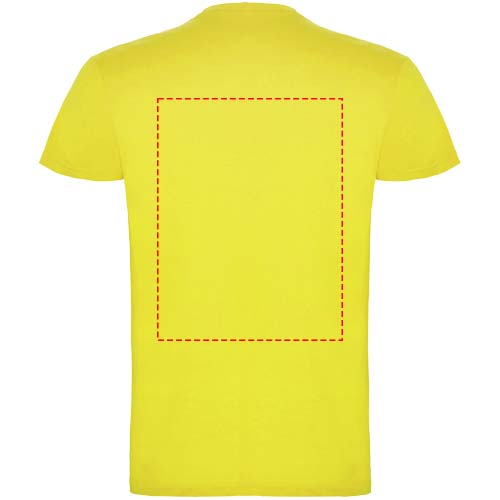Short-sleeve t-shirt with double layer crew neck in elastane, made in tubular fabric for adults. Reinforced covered seams in collar. Removable label. The model is 190 cm and is wearing size L.