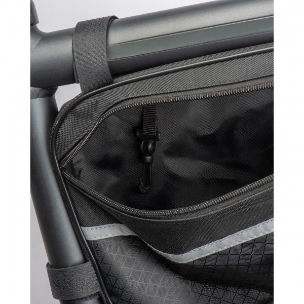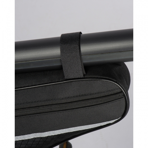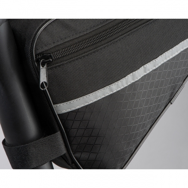 Bicycle bag made of durable 600D polyester with reflective stripes. The bag can be easily attached to the middle frame bar using the brackets and offers sufficient space for all important utensils. We will print your logo on the bag.