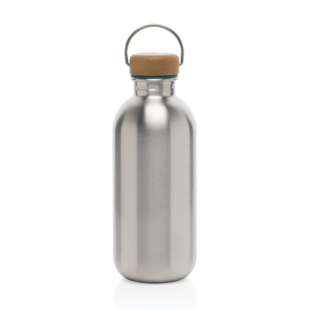 A lightweight and compact 600ml high quality stainless steel bottle with a sustainably sourced PP lid. The stainless steel and PP lid feature a convenient carry loop. Handwash only
