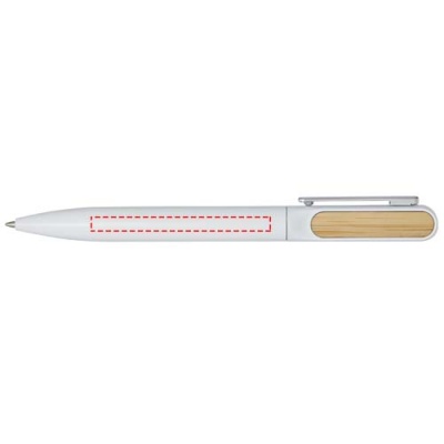 The Blanca ballpoint pen has an upper barrel made of recycled plastic with a coloured spray coating, and bamboo accessories on both sides. The lower part of the barrel is made of recycled aluminium with a coloured spray coating. Ink colour: Black. Writing length: 400 metres. Nib size: 1.0 mm.