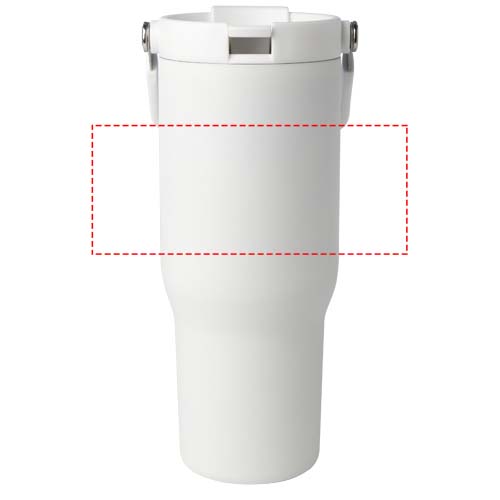 The Bronx 900 ml tumbler is made from RCS certified stainless steel and has a double-walled vacuum construction with copper insulation. The lid has a dual function with a collapsible straw for easy sipping, and a flip-top opening with a convenient folding handle for effortless portability. Fits most car cup holders. Packed in a recycled cardboard gift box.