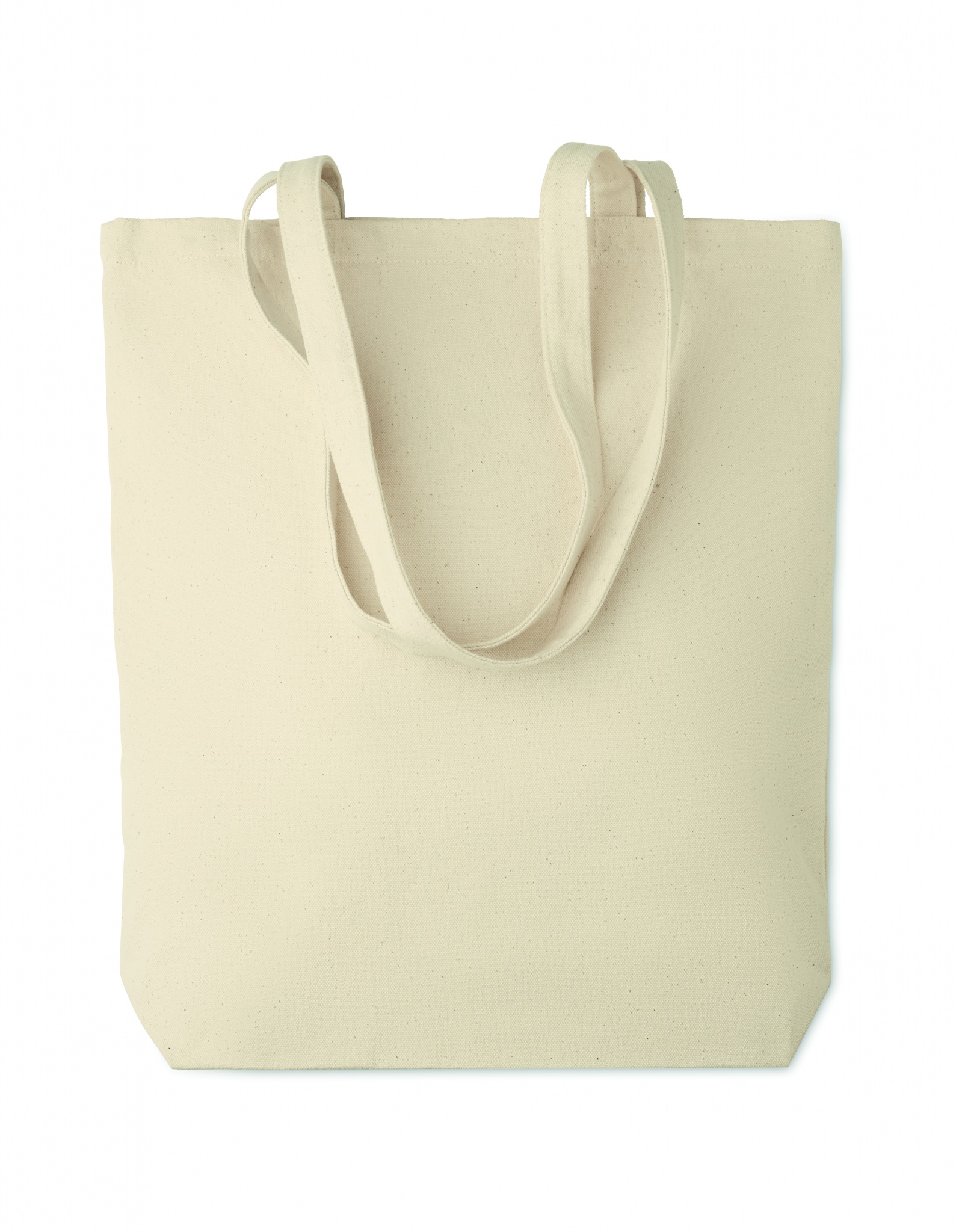 Canvas shopping bag with long handles and with bottom gusset. An ideal bag for your daily grocery shopping. The long handles make it easy to carry it by either holding it or hanging it over your shoulder. This canvas tote has a base gusset so you can carry more items than with a regular shaped bag. 270 gr/m².