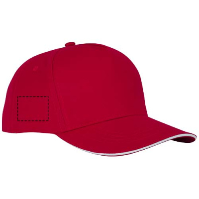 The Ceto 5 panel sandwich cap – style and practicality harmoniously combined. Made from 175 g/m² cotton twill, it offers not only durability but also a soft and breathable feel. Featuring a pre-curved visor and a sandwich design, the cap provides sun protection with a touch of elegance. With a structured front panel and cotton inside details, this cap boasts both sophistication and comfort. With a head circumference of 58 cm, it guarantees a tailored fit for a variety of head sizes. The fabric hook and loop fastener provide effortless adjustability, allowing to achieve the perfect fit. The Ceto cap is the ideal accessory for any occasion, whether it's a casual outing or an outdoor adventure.