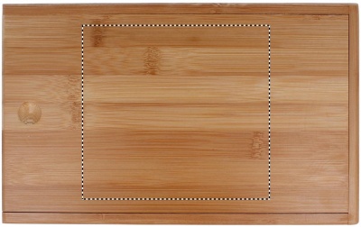 Bamboo cheese and wine set. Includes a stainless steel-knife, cheese peeler, bottle opener and wine stopper. Presented in bamboo box. Bamboo is a natural product, there may be slight variations in colour and size per item, which can affect the final decoration outcome.