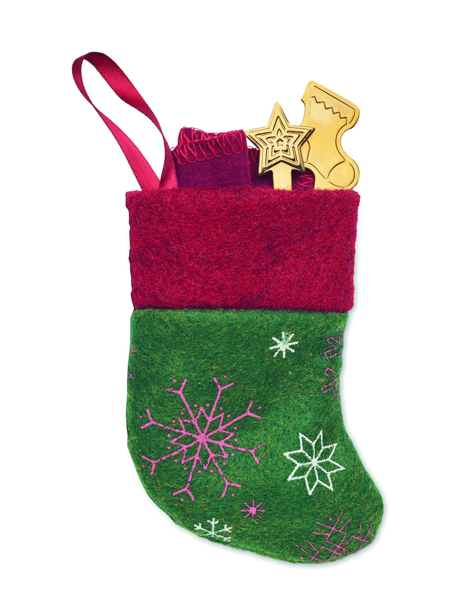 Christmas dessert cutlery set including fork and spoon in stainless steel with a 150 gr/m² cotton napkin. Presented in a Christmas stocking shaped pouch.