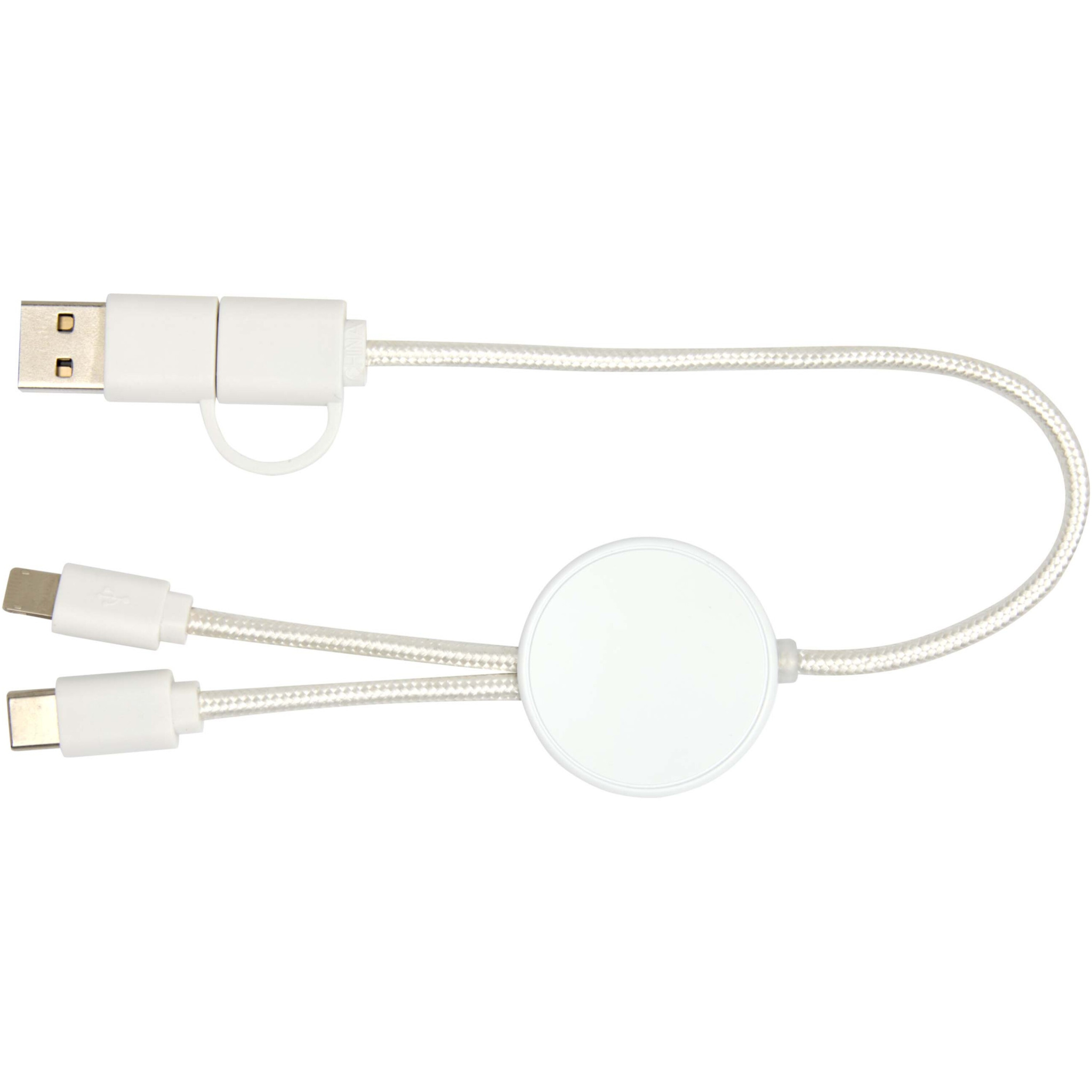 Citala 5-in-1 recycled plastic 30 cm data sync and 27W fast charge cable, White
