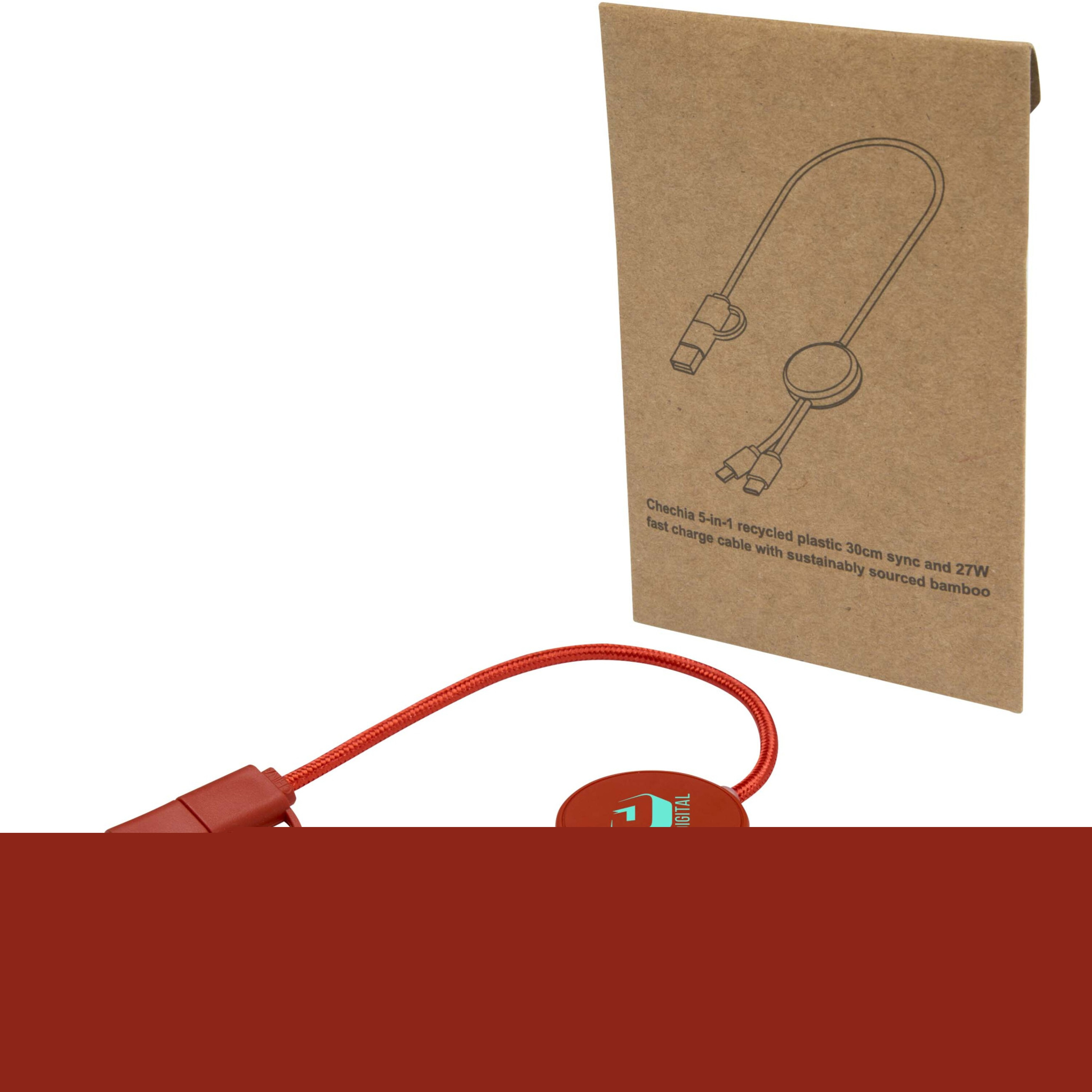 Logotrade advertising products photo of: Citala 5-in-1 recycled plastic 30 cm data sync and 27W fast charge cable