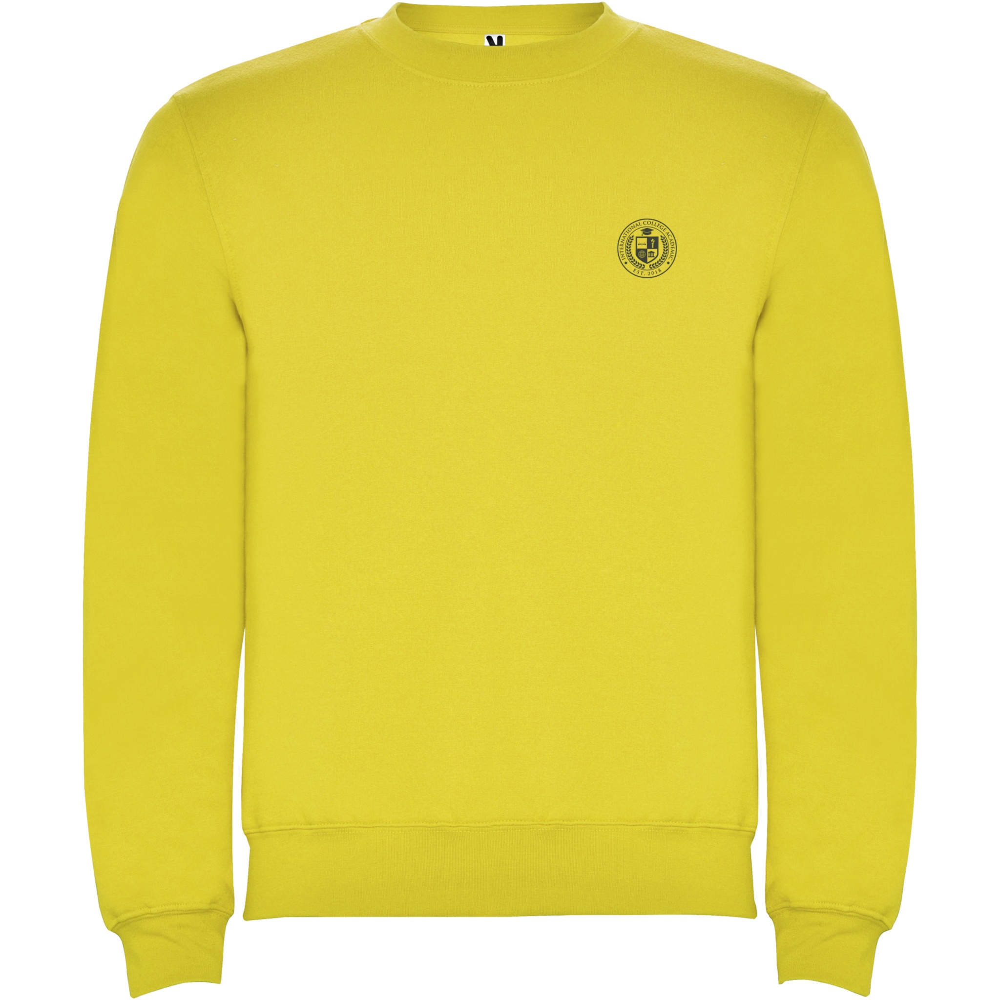 Classic sweatshirt with 1x1 elastane rib in collar, cuffs and waistband. Reinforced covered seams in collar. Removable label.