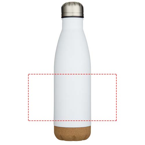 Vacuum insulated stainless steel water bottle with cork details at the bottom. The double-wall insulation keeps drinks hot or cold for several hours. Presented in a recycled cardboard gift box. Volume capacity: 500 ml.