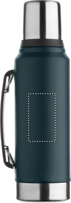 Double wall vacuum insulating bottle in recycled stainless steel (90% recycled stainless steel and 10% stainless steel) with handle on side. With PP lid and recycled stainless steel cup. Leak-free. Capacity: 1L.