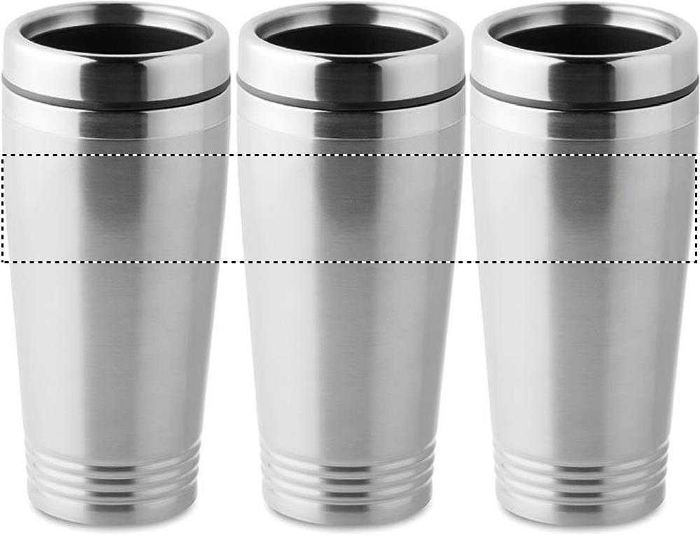 Double wall stainless steel travel cup with black PP lid. Capacity: 400 ml.