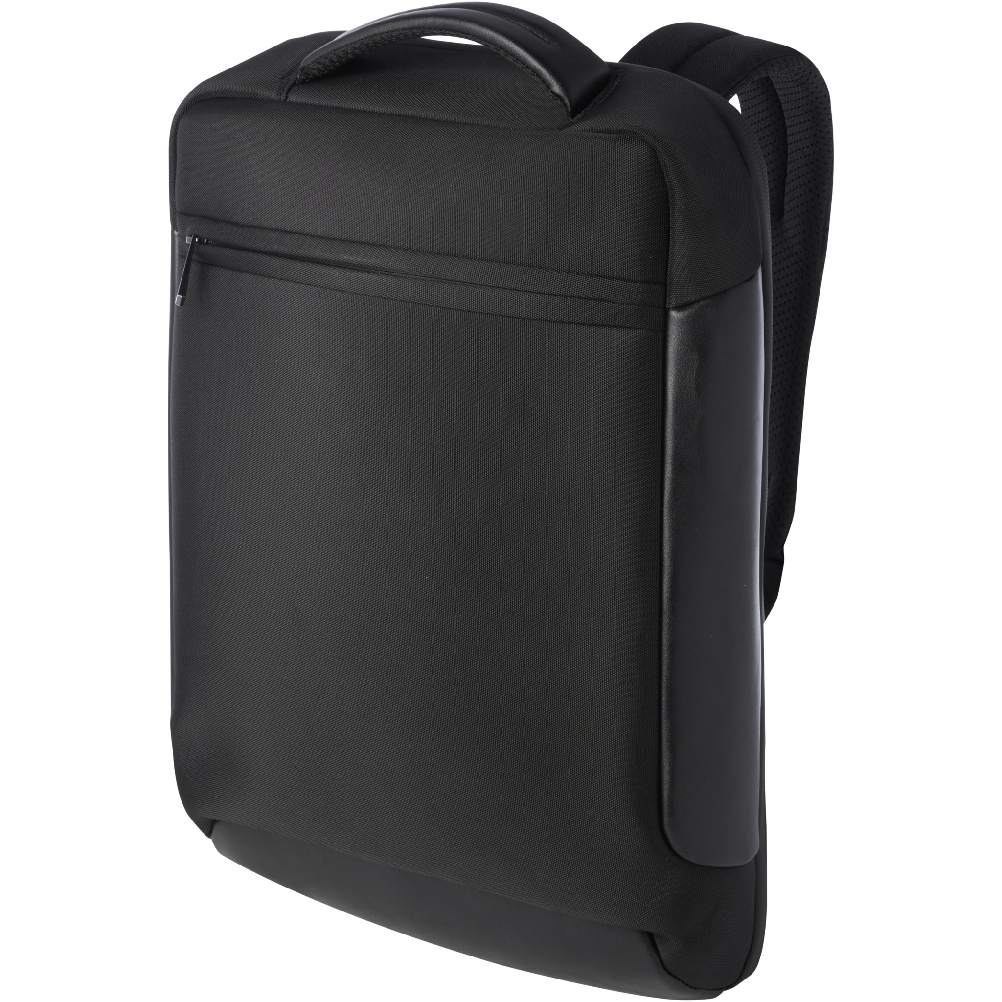 The sleek, compact and sturdy GRS certified Expedition Pro laptop backpack is a perfect companion for professionals on-the-go. It is made from water repellent 900D RPET, coupled with premium PU elements and RPET lining. It features a dedicated 15.6" laptop compartment, a tablet sleeve, multiple organisational pockets, a zipped front pocket and a hidden pocket right beneath the luggage strap on the back. Constructed with padded and adjustable shoulder straps, an integrated card sleeve pocket, a sunglasses loop, moulded air mesh backing as well as a padded handle, ensuring maximum carrying comfort and convenience. Volume capacity: 12 litres. PVC free.