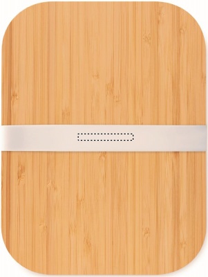 Lunch box in glass with bamboo lid and silicone band. Capacity 800 ml. Bamboo is a natural product, there may be slight variations in colour and size per item, which can affect the final decoration outcome.