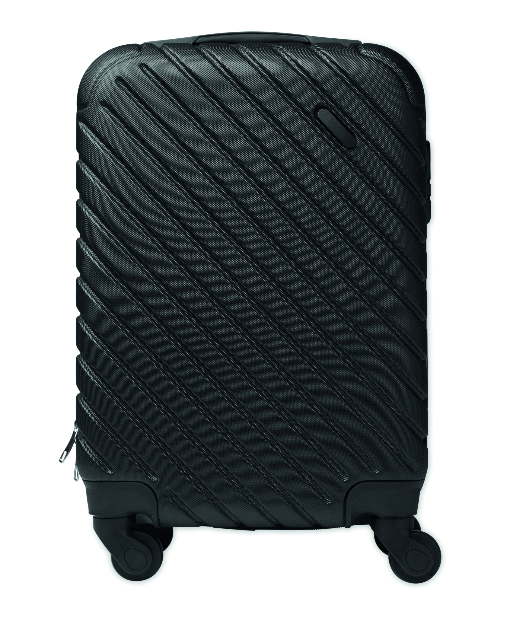 18 inch hard-shell trolley in ABS. 1 main compartment and inner compartment. Includes a security lock. Rides on 4 wheels.