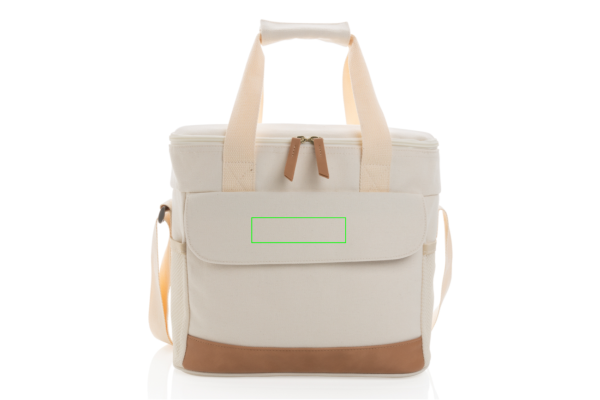 Pack your favourite food or beverages in this chic cooler bag! This beautiful 16oz. recycled canvas large cooler bag can store up to 20 cans. With 2 mesh side pockets and 1 front pocket for extra storage. With beautiful PU details. The AWARE™ tracer validates the genuine use of recycled canvas. 2% of proceeds of each Impact product sold will be donated to Water.org. Composition 60% recycled cotton and 40% recycled polyester. Lining in PEVA.