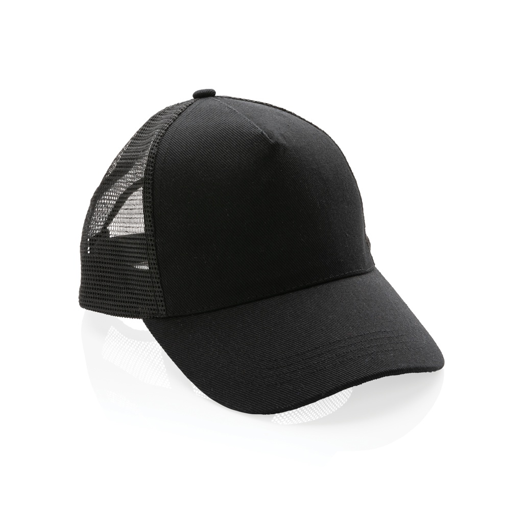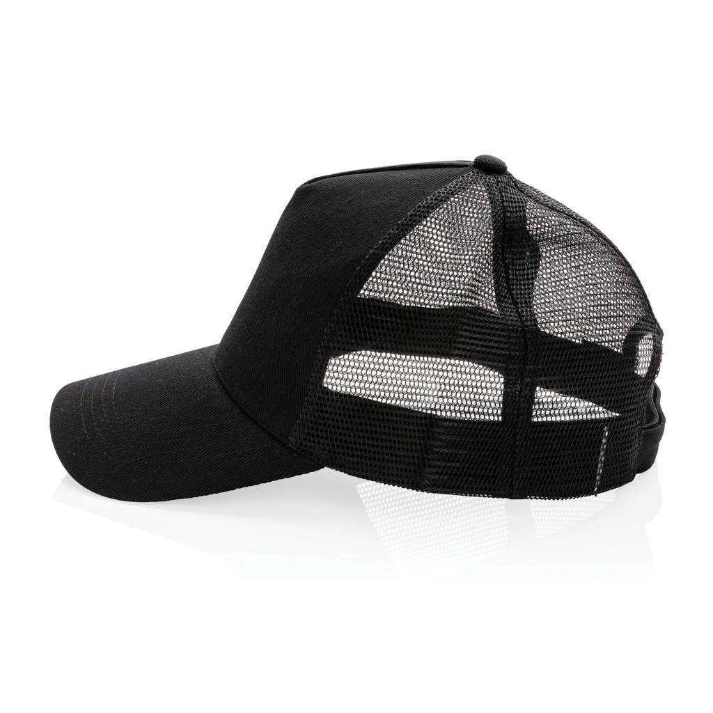 Impact AWARE™ Brushed rcotton 5 panel trucker cap 190gr, black