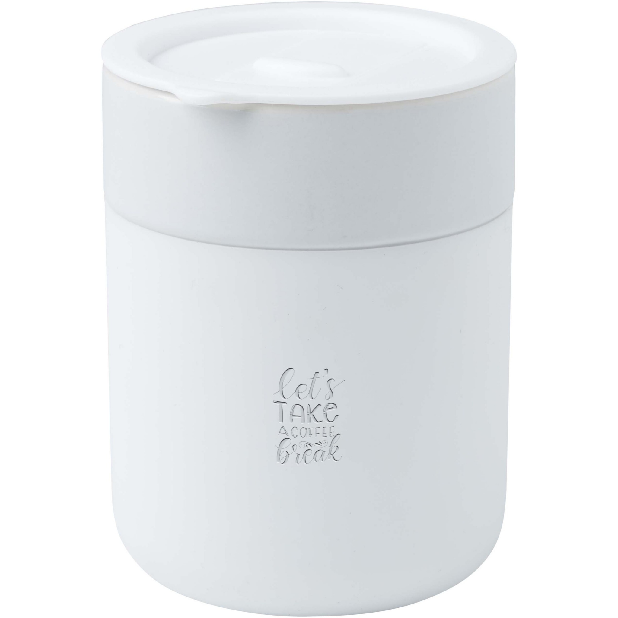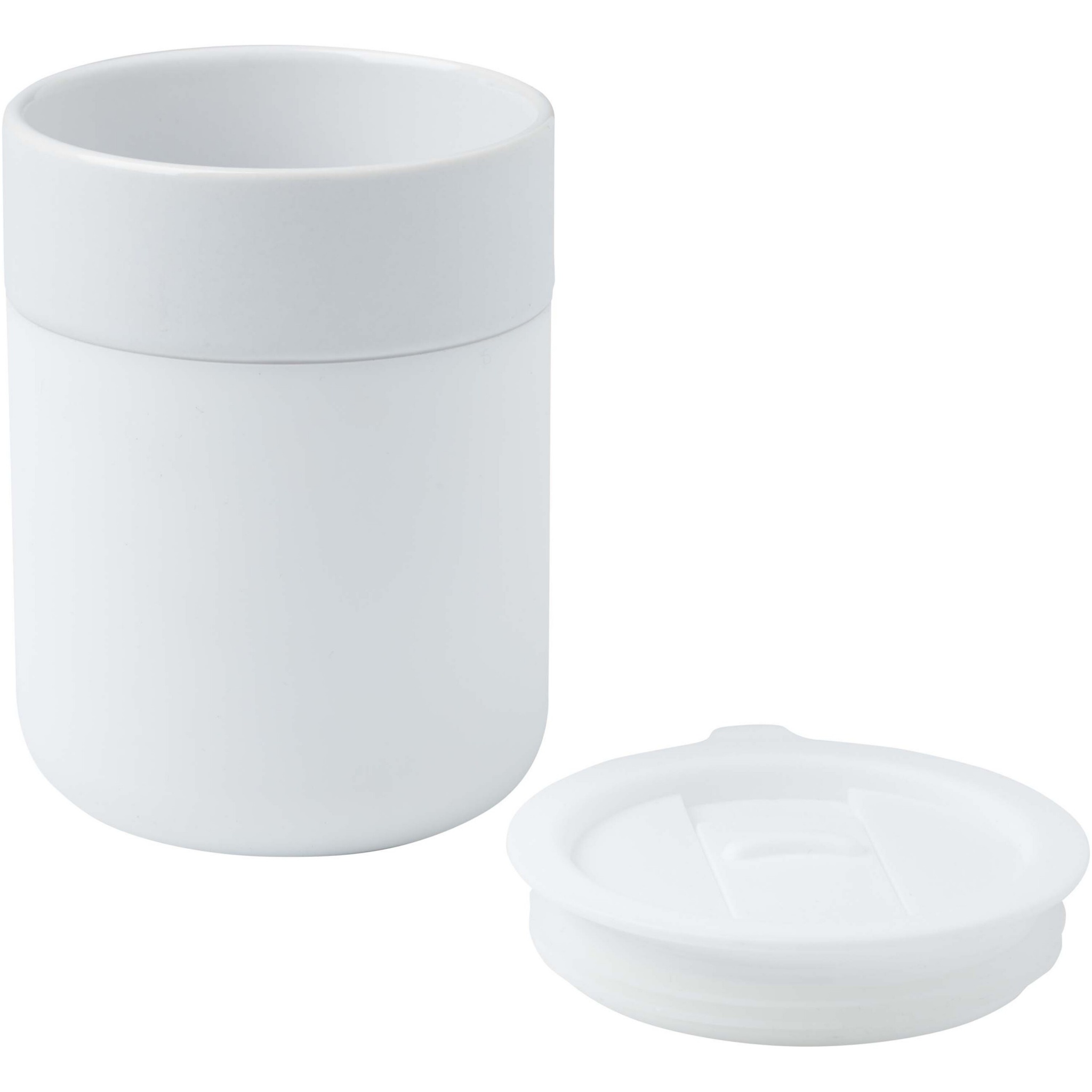Java 330 ml ceramic tumbler with silicone wrap and plastic lid, White