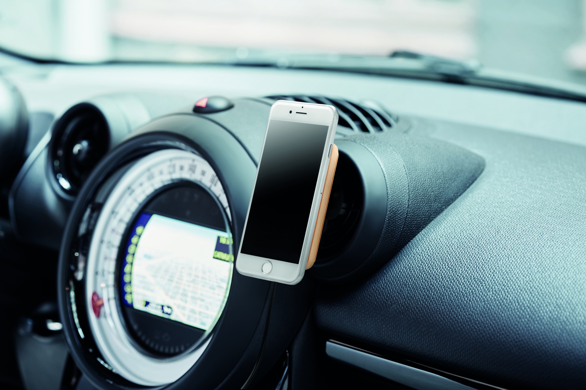 Magnetic bamboo wireless charger with car mount. Output: DC 9V/1.67A (15W) for quick charging. Compatible with iPhone® 12 and newer. Including additional magnetic metal ring to support charging of other non-magnetic wireless chargeable phones. Bamboo is a natural product, there may be slight variations in colour and size per item, which can affect the final decoration outcome.