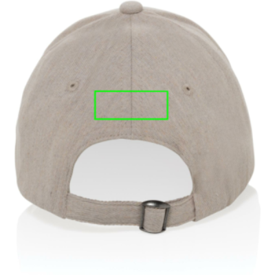 Milo AWARE™ heather 6 panel cap. 70% recycled cotton & 30% recycled polyester. Cap comes with metal buckle closure.