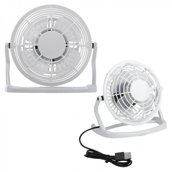 Quiet, swiveling USB table fan with a lot of power. We print your logo on the front (just 1C possible).