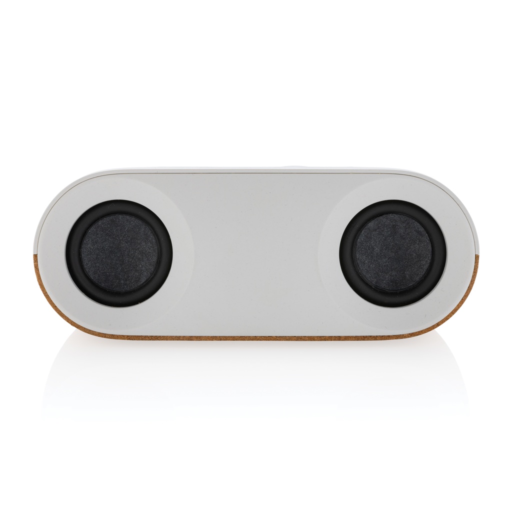 10W wireless speaker made with FSC® 100% cork and RCS (Recycled Claim Standard) certified recycled ABS. Total recycled content: 25% based on total item weight. RCS certification ensures a completely certified supply chain of the recycled materials.The speaker is equipped with a 1200 mAh battery to ensure up to 10 hours of playing time and BT5.3 for smooth connection with clear sound. Connection range up to 10 metres. With mic and pick up function to answer calls. Packed in FSC mix FSC® box. Including RCS certified recycled TPE charging cable. Item and accessories 100% PVC free.